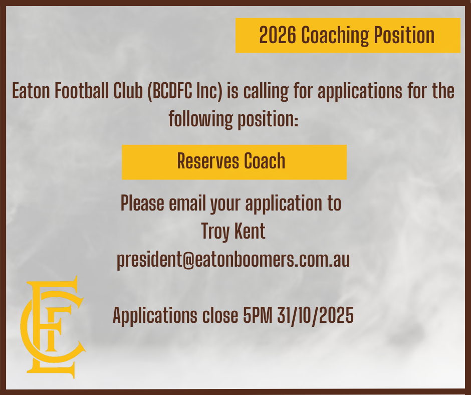 Please email your application to Troy Kent president@eatonboomers.com.au